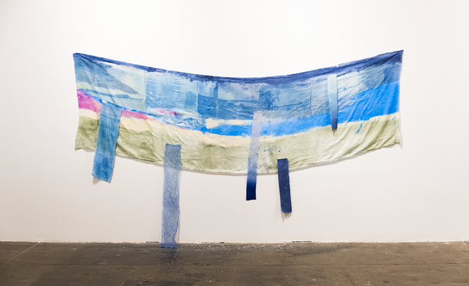 A painting on silk documenting a series of visits to the treaty site at Penn Treaty Park.